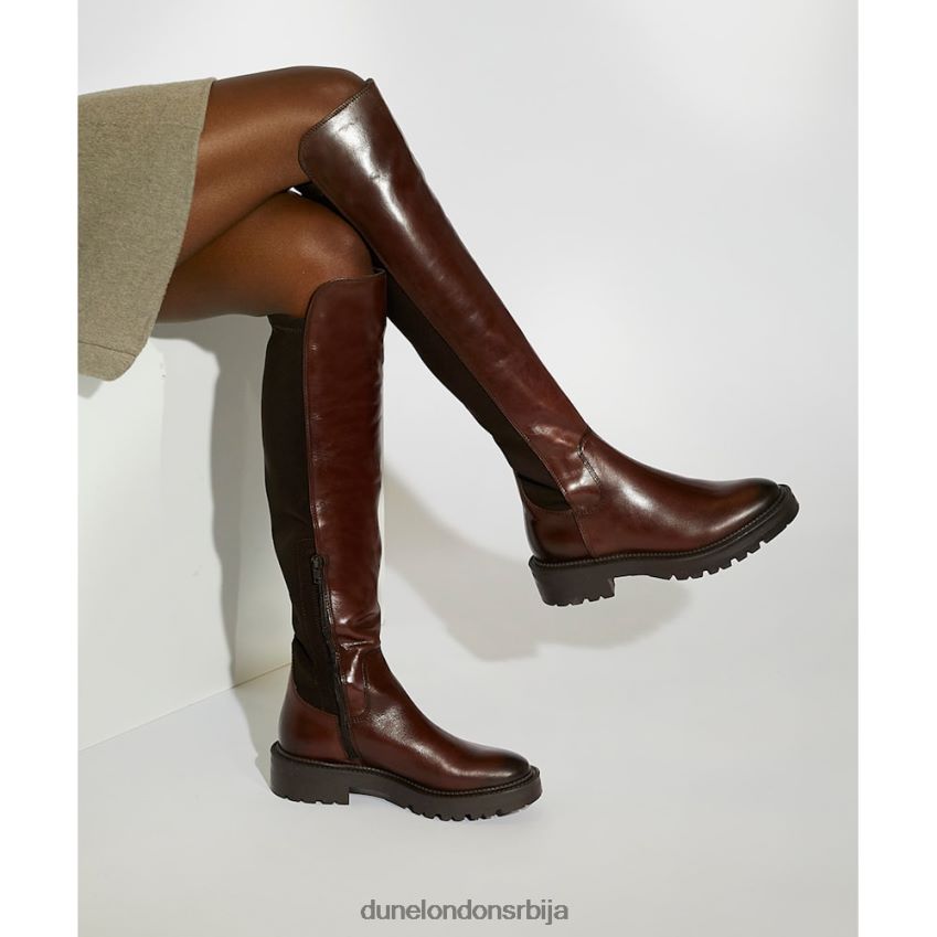 Жене Dune London браон здепасте кожне чизме до колена телла J80F88497